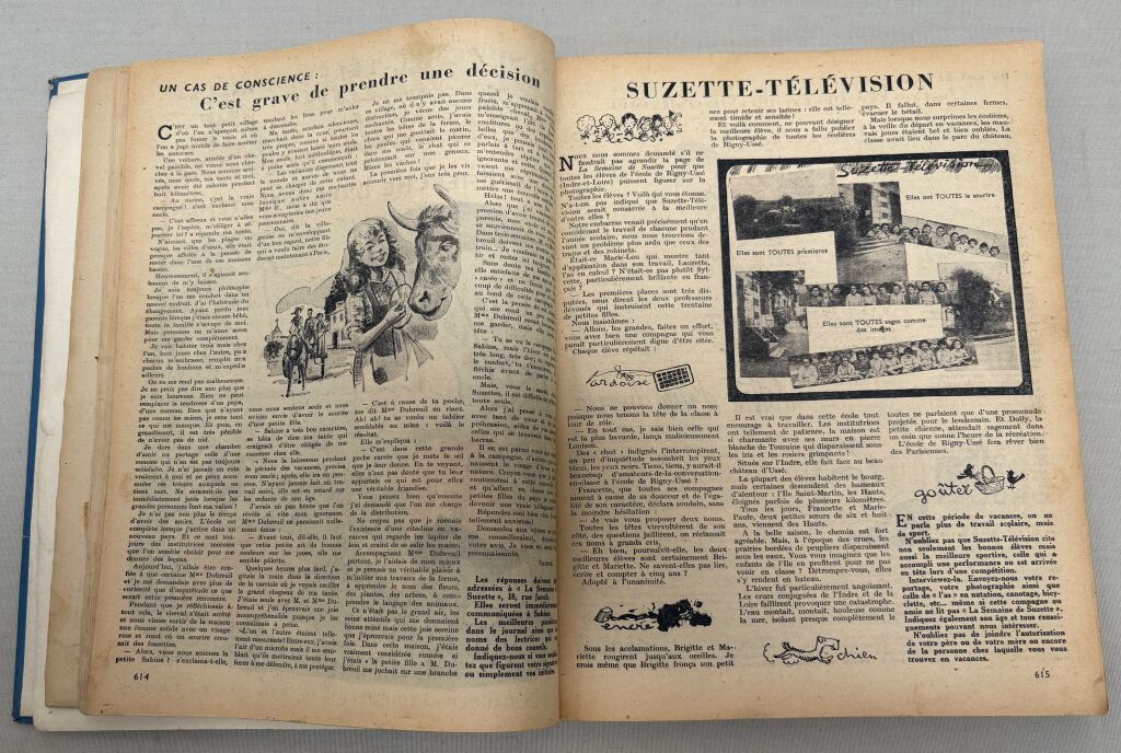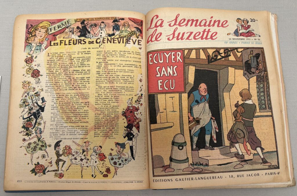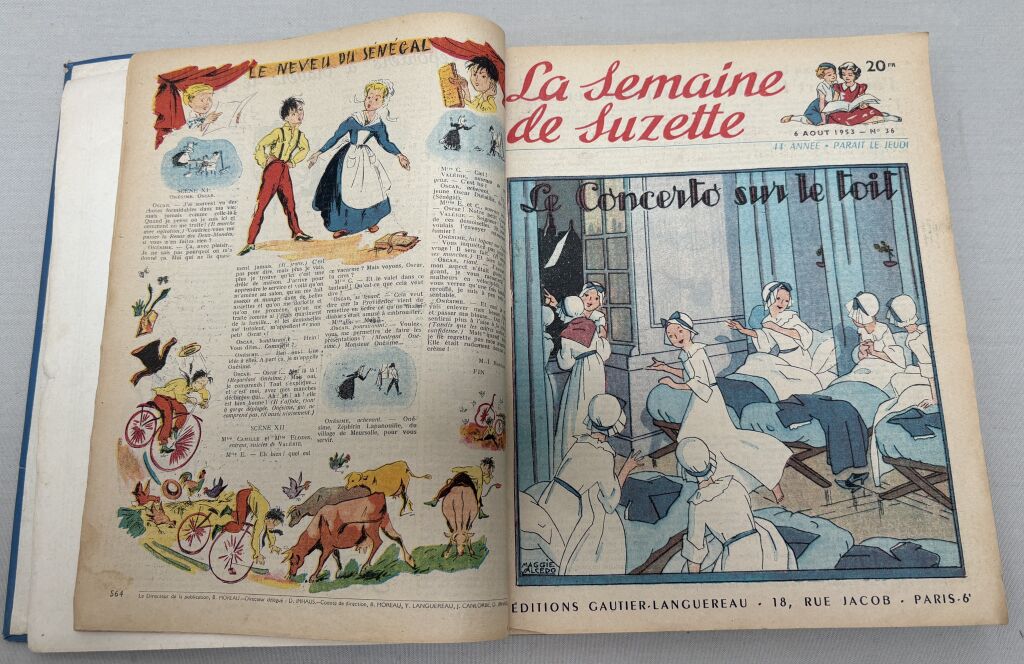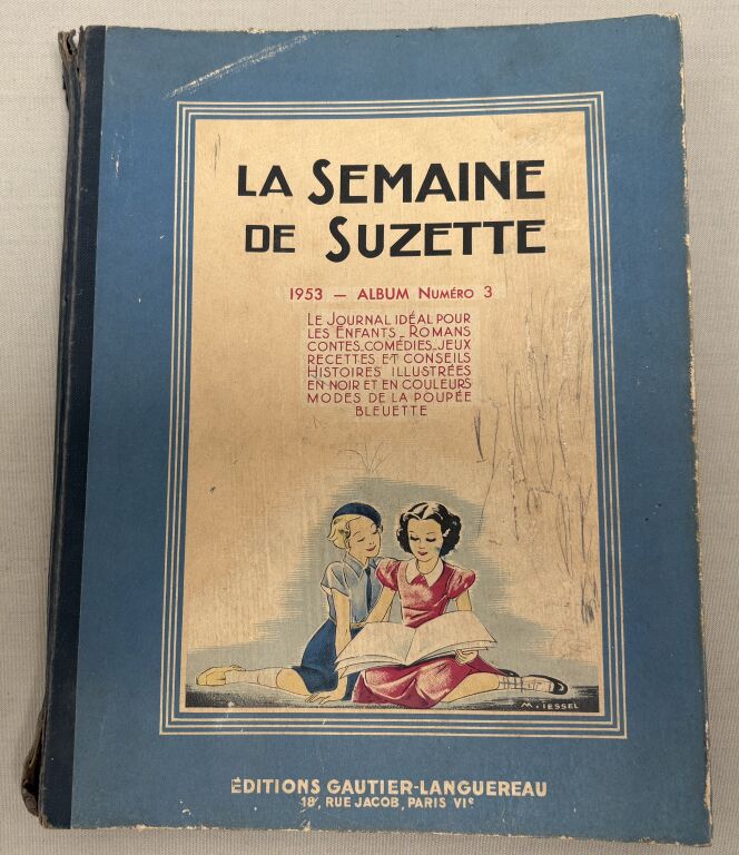 ENFANTINA - " LA SEMAINE de SUZETTE " - album numéro 3, août à novembre 1953, collection reliée numéros 35 à 52 - 31,5 x 22,5 cm. Complet état d'usage, bel intérieur.