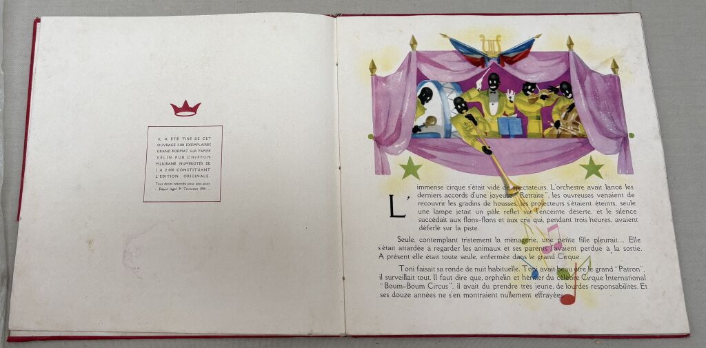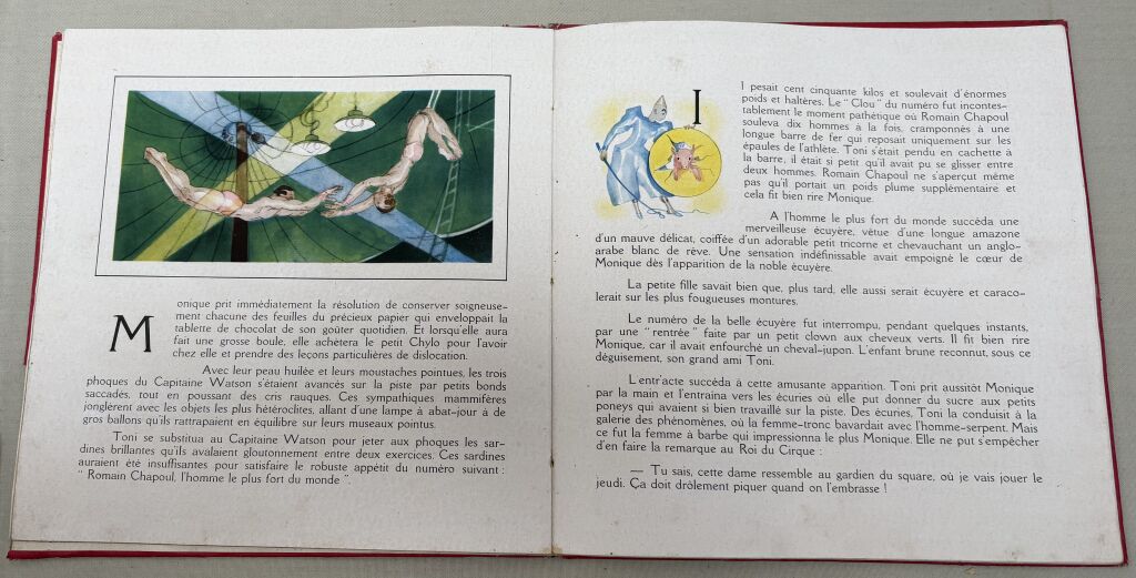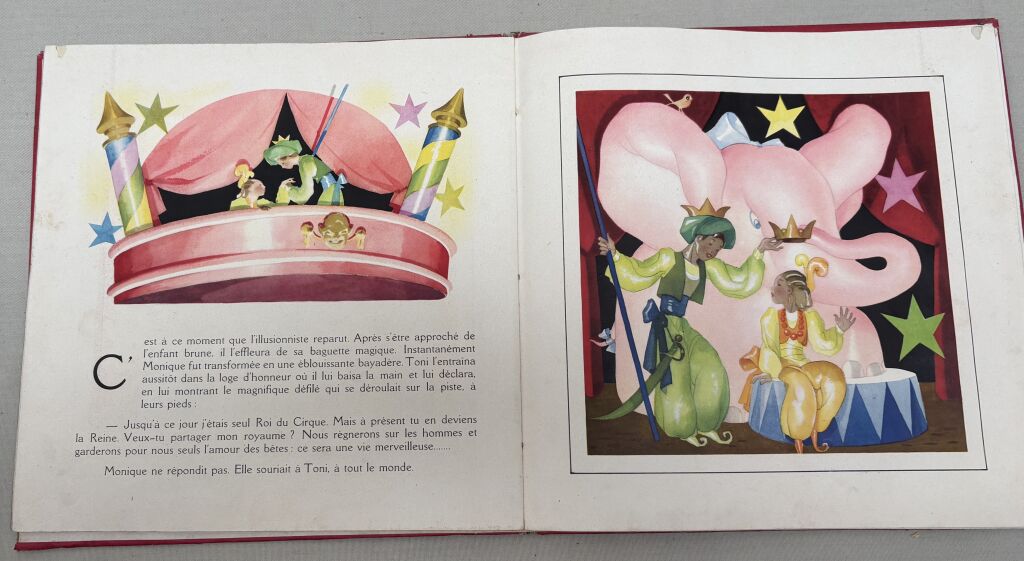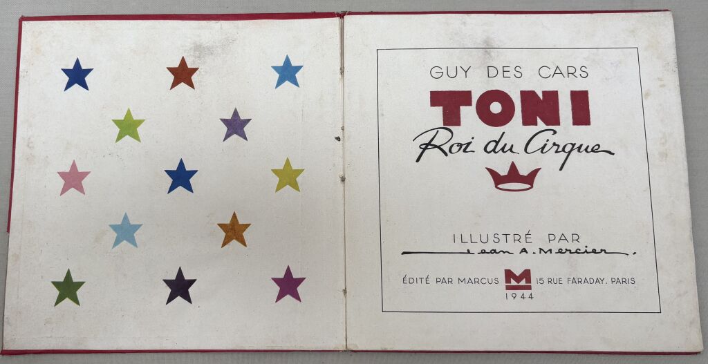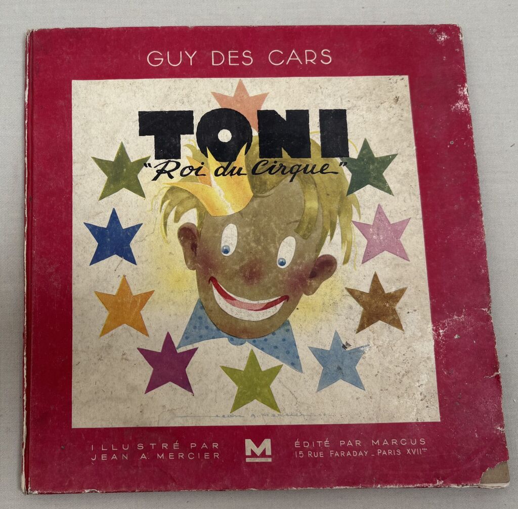 ENFANTINA - " TONI ROI du CIRQUE, par GUY des CARS - JEAN ADRIEN MERCIER, ILLUSTRATEUR - 26 pages sous couverture cartonnée - 24 illustrations pleine page et in texte de J.A.M. - Marcus éditions juillet 1944, imprimerie Beuchet & Vanden Brugge Nantes. - (état d'usage).