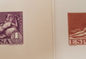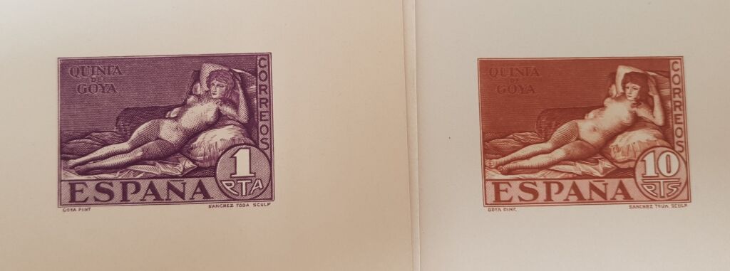 ESPAGNE - Musée du Prado - Centenaire du Peintre GOYA - Émission souvenir de deux feuillets de Luxe, à l' italienne 248 x 322 mm, avec reprise en bas à droite du timbre en NON-DENTELE dans sa couleur d' émission :