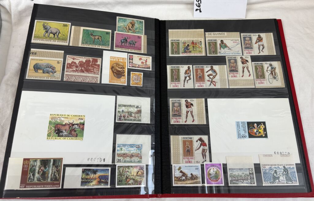 EX COLONIES FRANCAISES - classeur - collection 80 timbres NON - DENTELES et EPREUVES de LUXE différents : 65 timbres à tirage limité 1 000 exemplaires + 15 épreuves de luxe (tirage 250). - TIMBRES NEUFS **