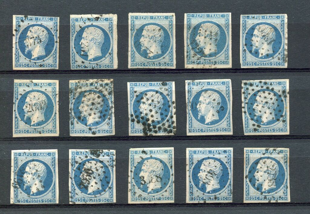 Numéro 10 - Collection de quinze timbres, beaux, oblitérations diverses.