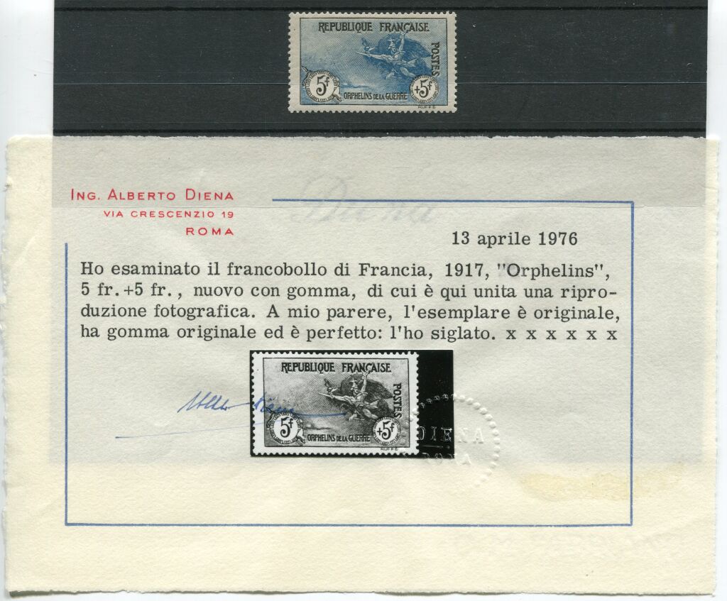 FRANCE 1917 - gros valeur 5 F + 5 F au profit des ORPHELINS de la GUERRE -