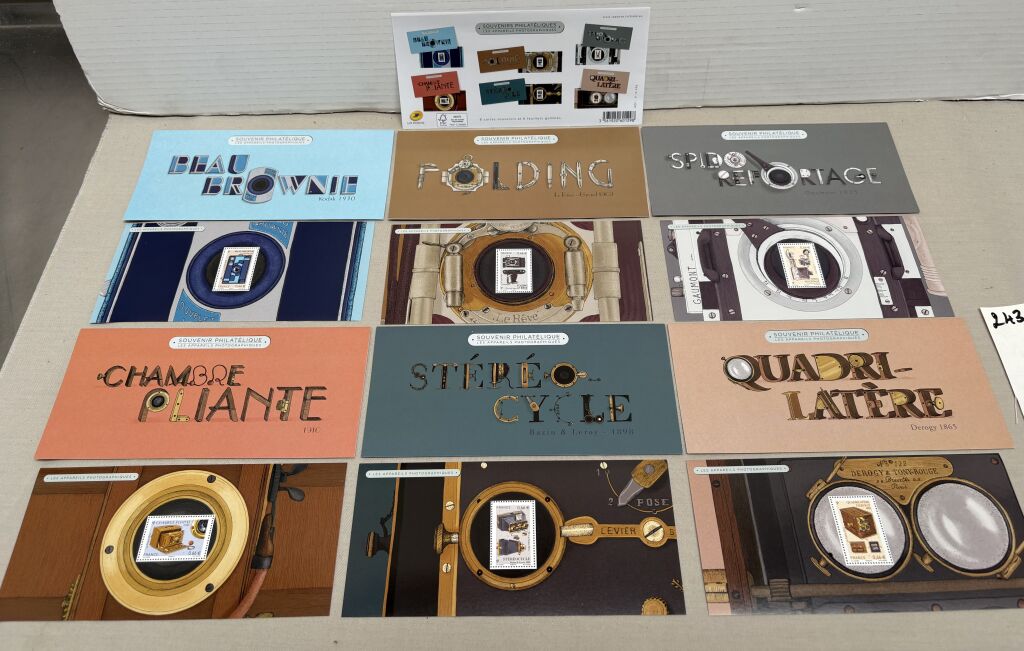 FRANCE 2012 - BLOCS COMMEMORATIFS SOUVENIRS " LES APPAREILS PHOTOGRAPHIQUES " . Collection complète de 6 feuillets individuels 205 x 95 mm, gommés, comportant chacun dans l' illustration un timbre dentelé - chaque feuillet dans sa "carte couverture " illustrée individuelle, sur vélin. - Yvert numéros 101 à 106.