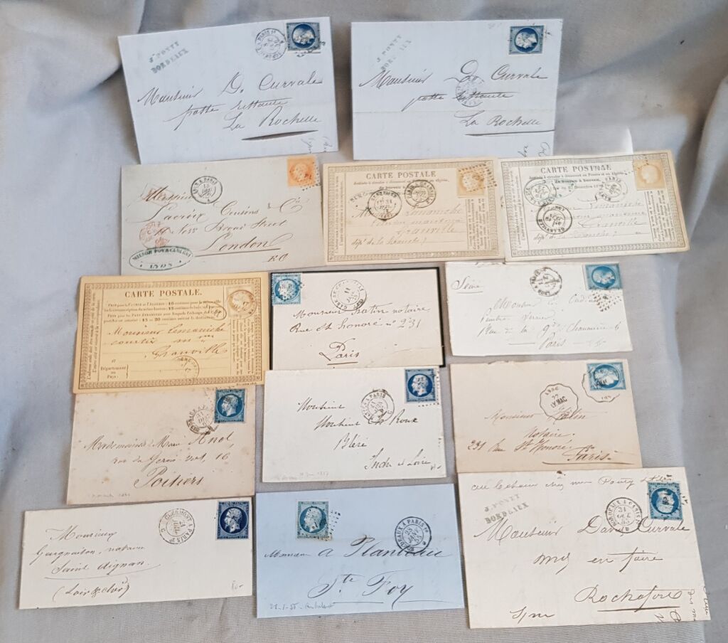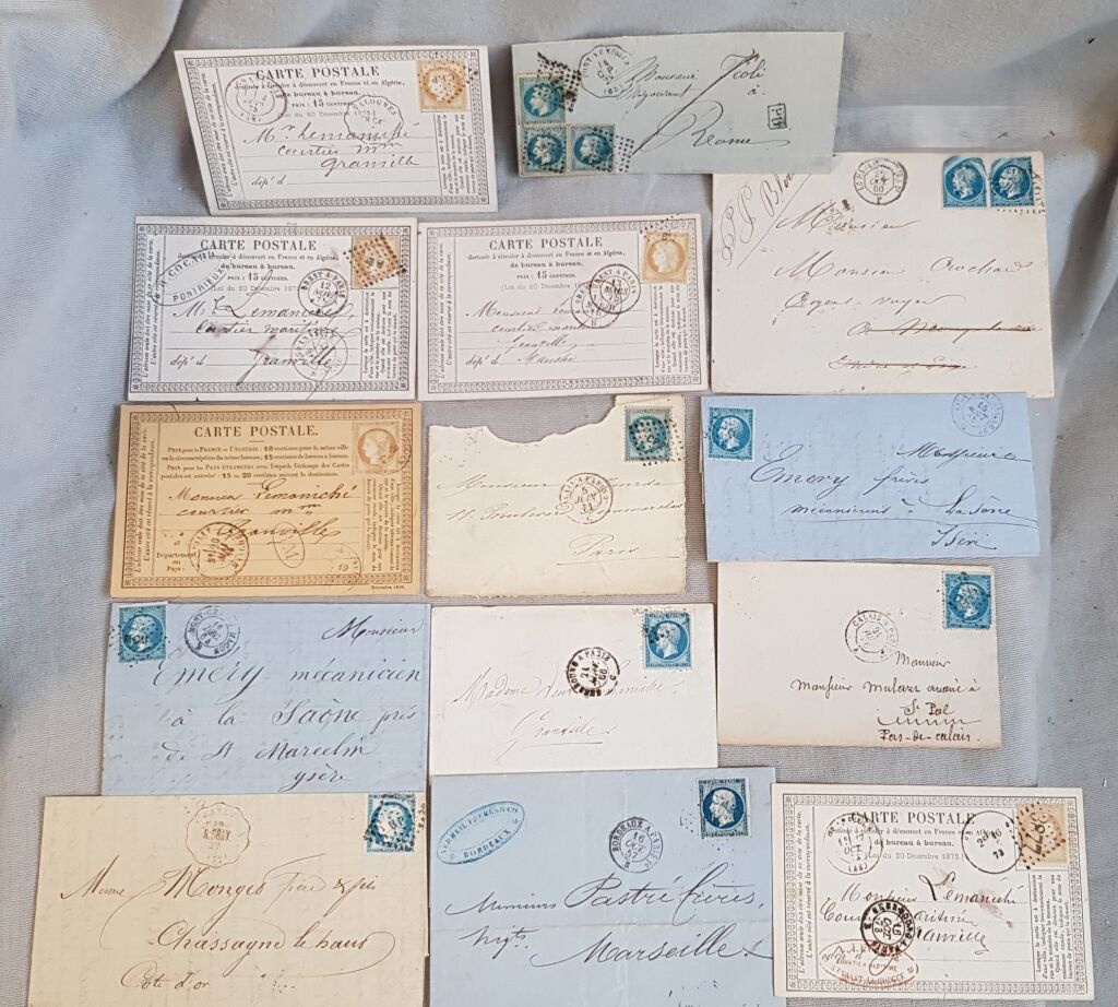 Napoléon III non dentelé (n° 14) + dentelés ( 22 - 23 - 29), Cérès ( 55, 59, 60).