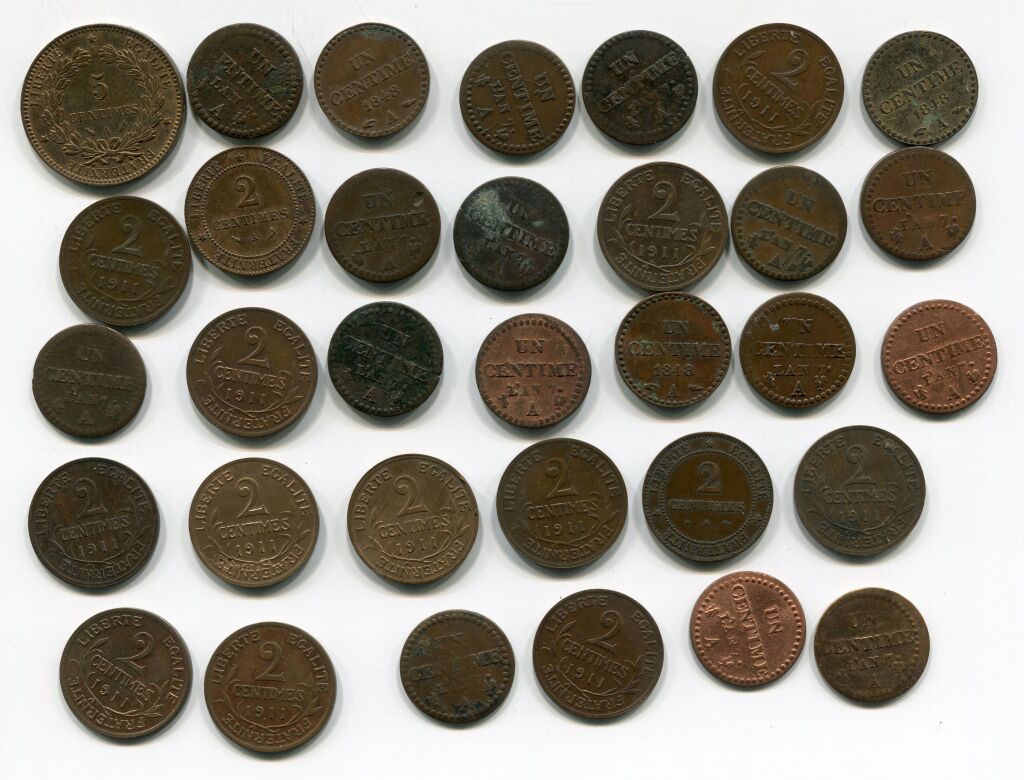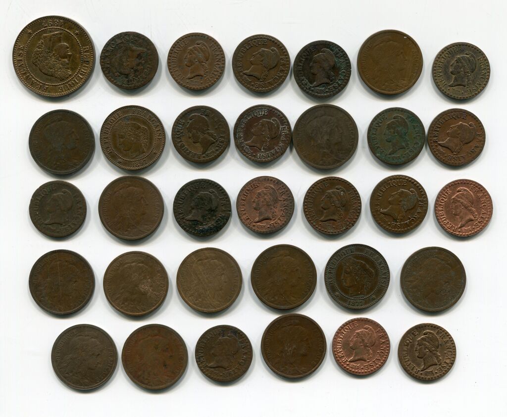 FRANCE - ACCUMULATION de 32 MONNAIES de un centime, deux centimes & cinq centimes en cuivre de la fin du 18e au début du 20e aux types Cérès, Dupuis et Dupré. TRENTE DEUX monnaies TTB, très très fort catalogue.