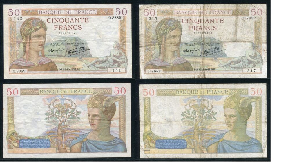 FRANCE - BILLETS - 50 FRANCS CERES type 1933 - Fy 18 modifié - Deux billets :
