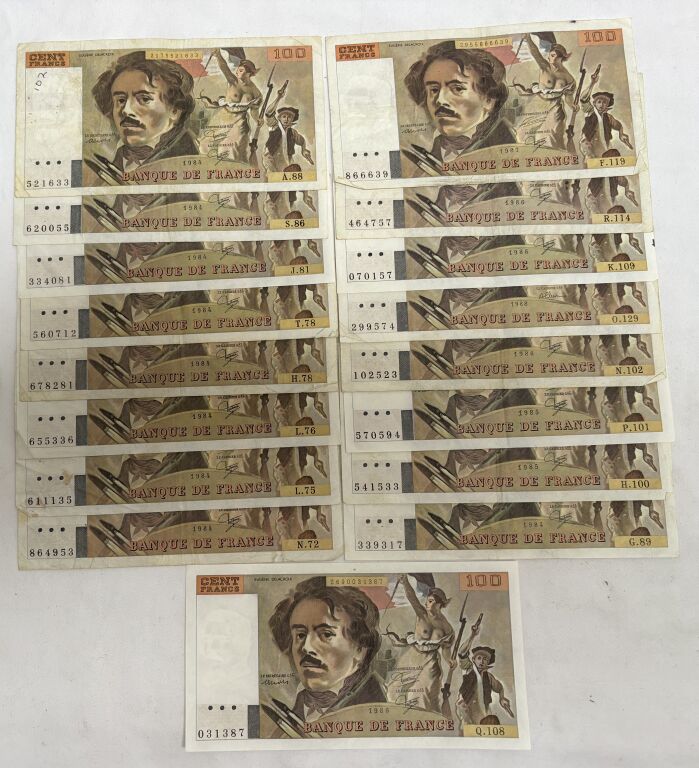 collection de DIX SEPT billets différents 1984 à 1988 ALPHABETS 70 à 129
