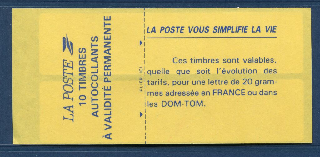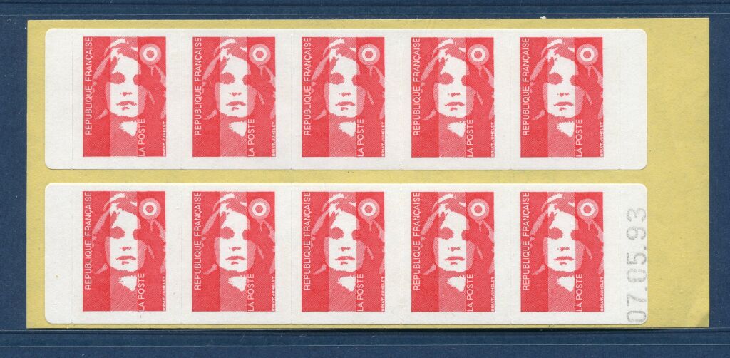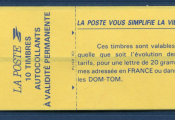 FRANCE CARNET - Type Marianne de BRIAT, sans valeur faciale rouge à validité permanente, non dentelé auto adhésif. Carnet à plat de dix timbres pour distributeur SAGEM - Couverture " la poste vous simplifie la vie " - 2 bandes de 5 timbres à coins arrondis - Variante longue 125 mm - AVEC COIN DATE (un carnet sur 5) - 2807 c 1 d.