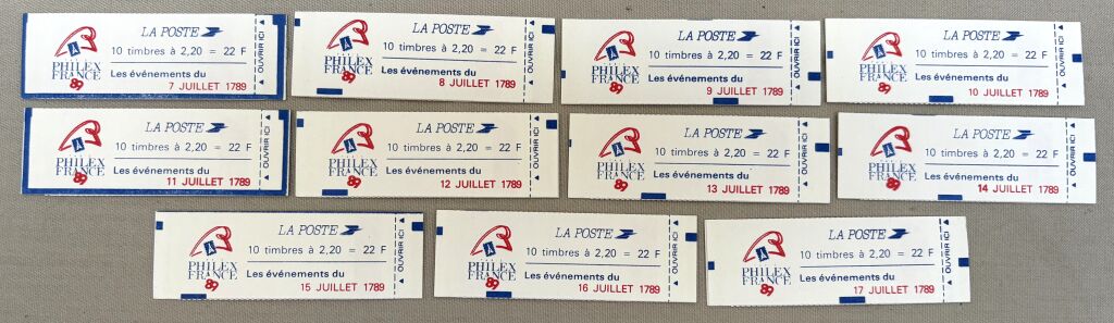 LES EVENEMENTS de JUILLET 1789 - Carnet fermé de 10 timbres à 2 F 20 rouge " Liberté de Delacroix " couverture blanche datée sur 11 jours : du 7 juillet 1789 au 17 juillet 1789. Au dos du carnet historique pour chaque journée. - n° 2376 - C 12 A.