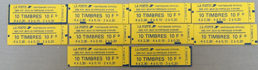 FRANCE CARNETS A COMPOSITION VARIABLE 1990 - " La Poste partenaire officiel des XVIe Jeux Olympiques d'Hiver " - carnet fermé couverture jaune de 10 timbres Marianne de Briat :Une bande de 4 timbres à 2 F30 + 0,20 F + bande de 4 timbres à 0F10 + 0F20.