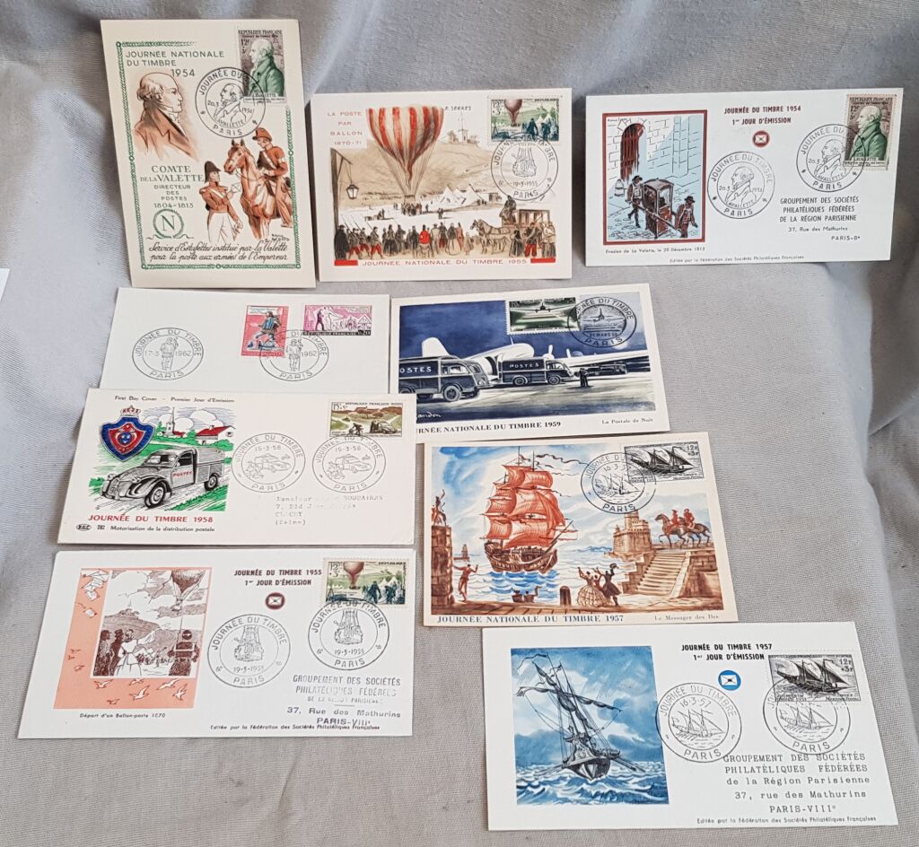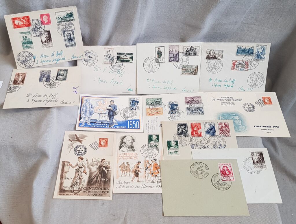 22 documents de 1947 à 1962, oblitérations 1er jour lettres voyagées, cartes & enveloppes.