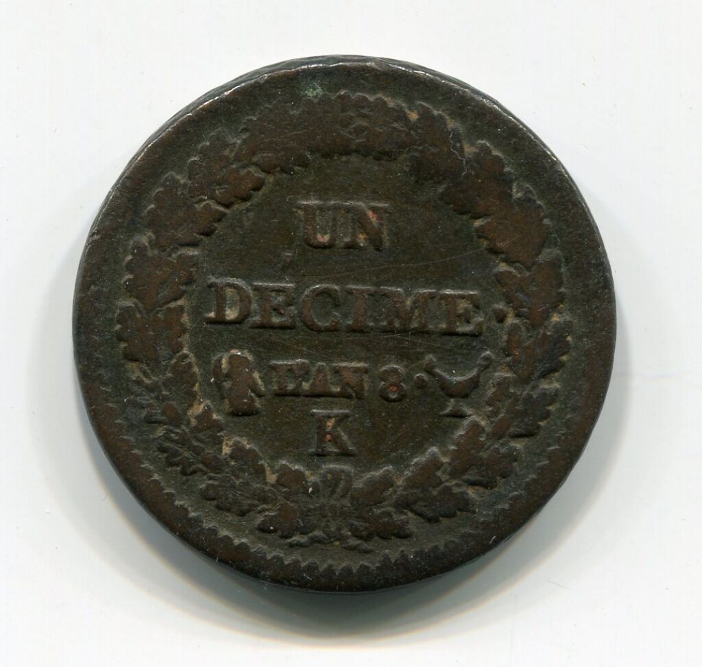 FRANCE directoire / Consulat 1798 :1800 - UN DECIME DUPRE type définitif (G 187 a).