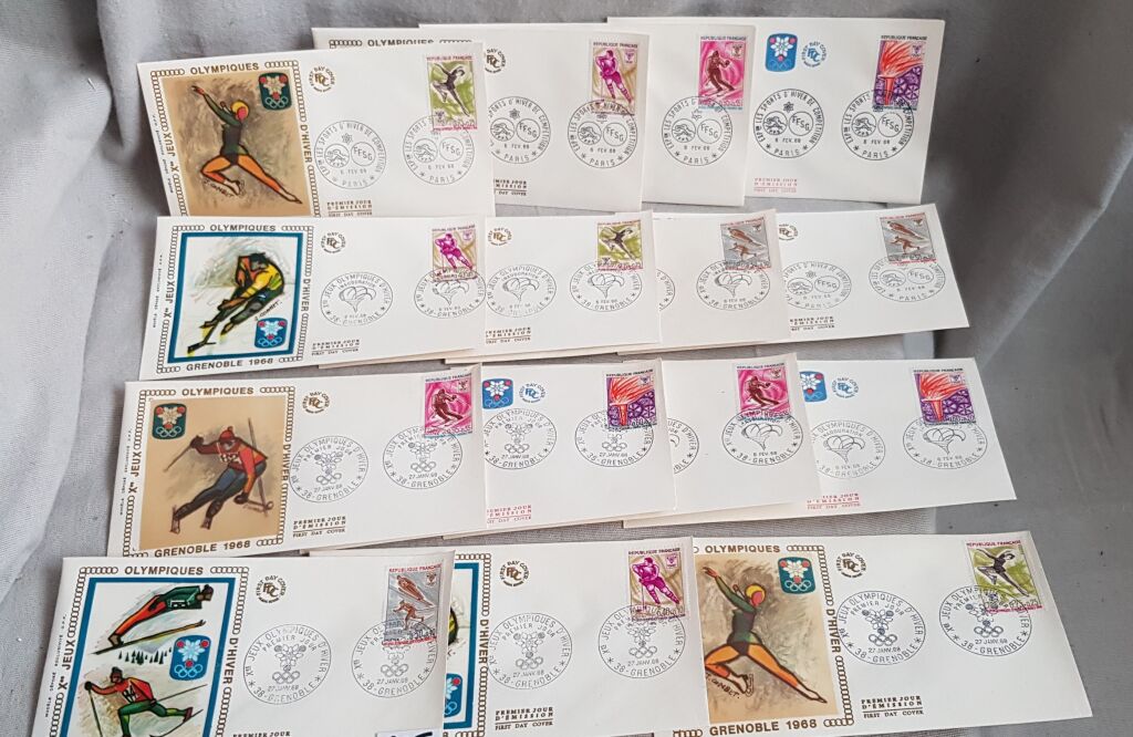 - 5 enveloppes avec le cachet " INAUGURATION " illustré des anneaux olympiques & sigle des jeux de Grenoble du 27 janvier 1968.