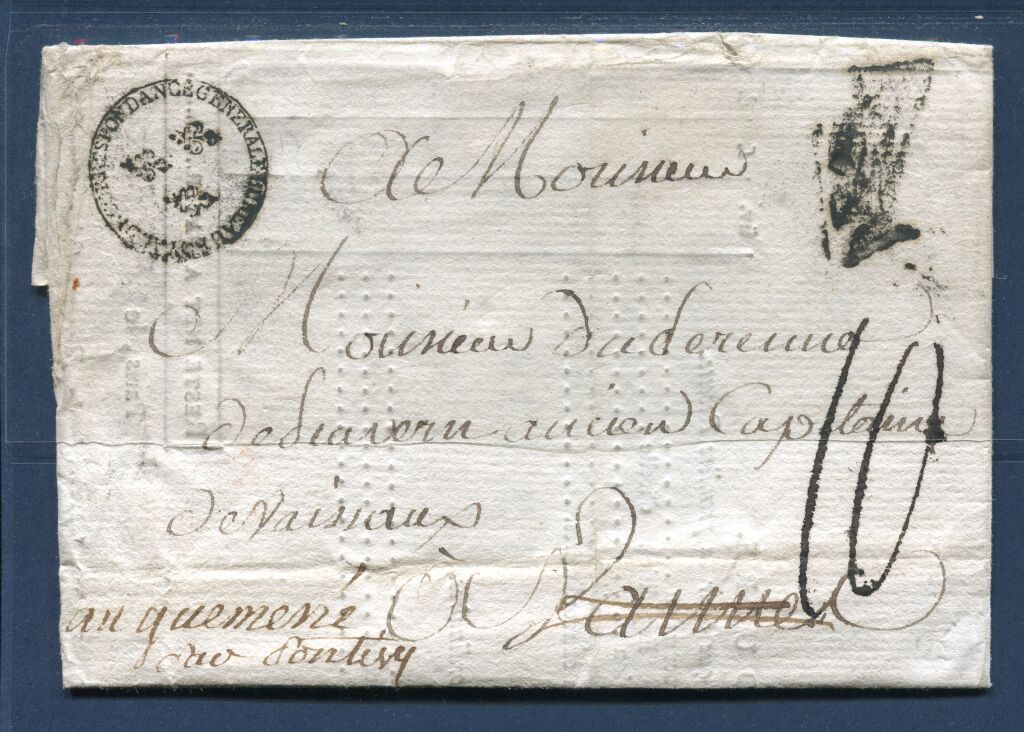 FRANCE - MARCOPHILIE du 18e SIECLE - Bien intéressant document du BUREAU GENERAL de CORRESPONDANCE de PARIS, institué par arrêt du Roi du 5 juin 1725, pour faire recette des pensions, gages ou rentes.