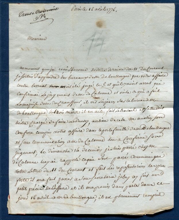 correspondance d'affaires pour Mr Langroide procureur syndic.