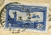 Lettre recommandée à 1 F 75 ( 1 F 50 avion survolant Marseille n° 6 + 25c semeuse camée ocre n° 235) au départ de Clermont Ferrand 9 mars 1934 pour Clermont Fd.