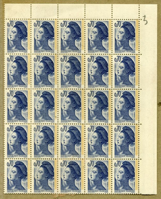 Bloc de 25 timbres neufs **, coin de feuille haut.