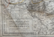 Fine carte avec salissures, faiblesses aux plis (photos). Une carte très précise et particulièrement riche d' enseignements : les évêchés, présidiaux (tribunal de justice), bailliages et sénéchaussées du Roy, duchés, châteaux, champs de batailles, abbayes d' hommes, de femmes, ordre de St Benoist, de St Augustin, de Prémontré, de Gramont, commanderies, élections, greniers à sel, greniers d' impost, de vente volontaire, bureaux des fermes, brigades, lieux où il y a la Poste, où il y a étape... les fleuves et ruisseaux, les grandes routes, les lieux dits etc..