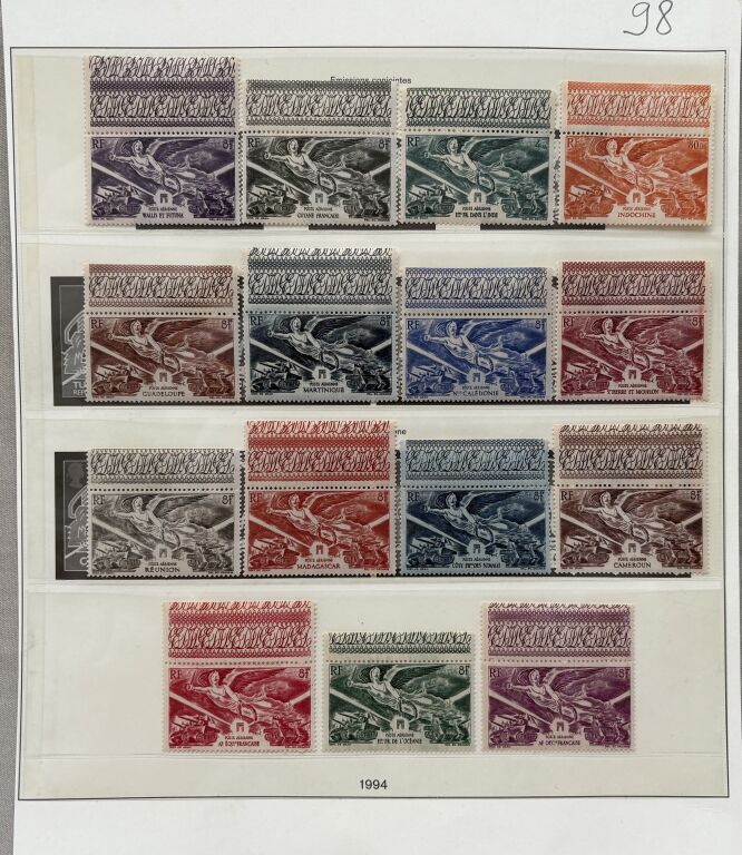 Série complète des 15 timbres émis par les 15 colonies françaises de l'époque.