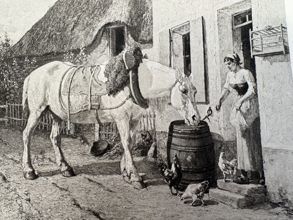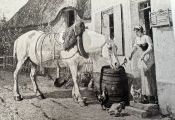 - " l'Avoine " - cheval et servante donnant l'avoine au milieu de la basse cour.