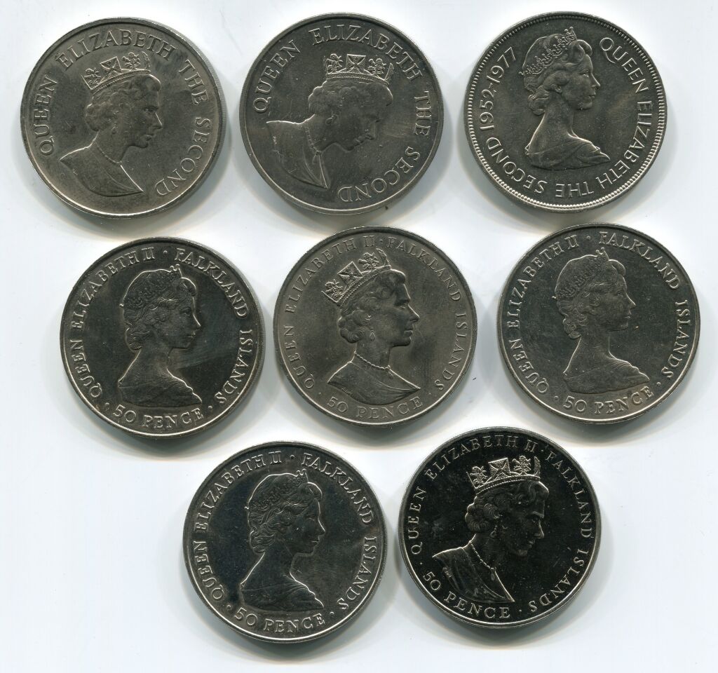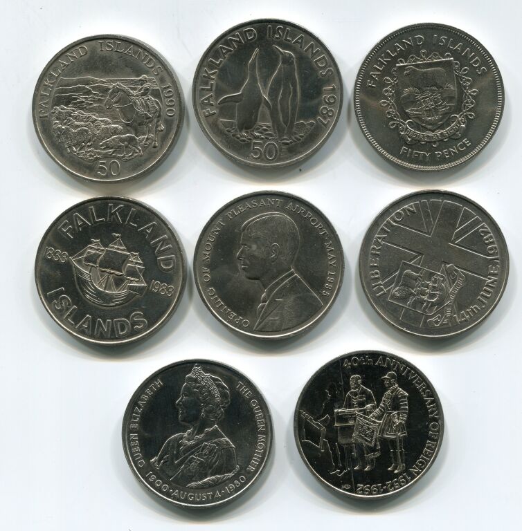 ILES FALKAND - HUIT MONNAIES COMMEMORATIVES à la taille de l' ECU /
