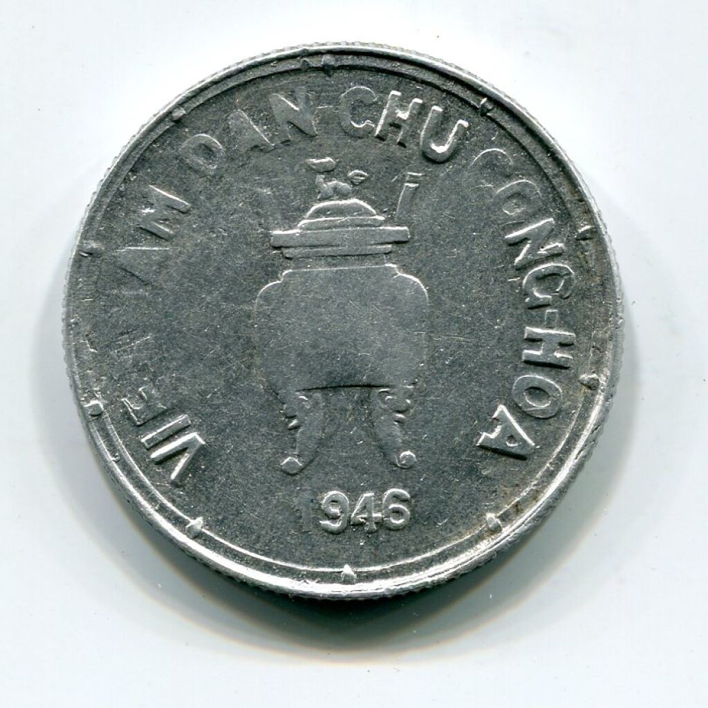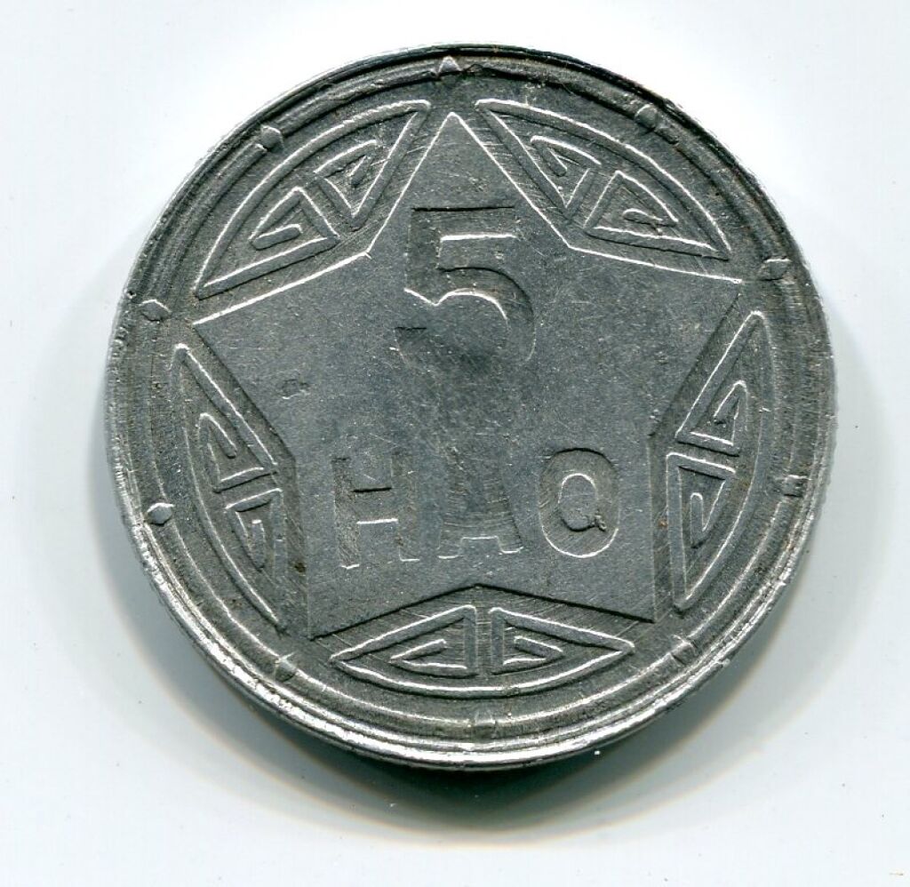HO CHI MINH PRESIDENT 1945-1946. - DANG CHU CONG HOA - RARE Cinq HAO 1946 en aluminium VALEUR en CREUX, à l'avers brule parfum - TTB