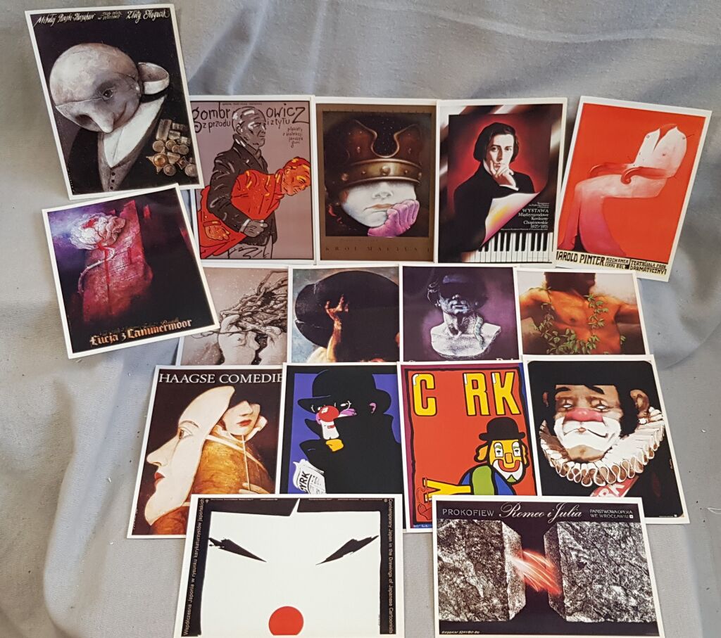 L' AFFICHE POLONAISE - collection 1991 de 16 cartes postales des éditions Stéphan Arcos de Toulouse, représentation des affiches des grands illustrateurs polonais, cartes datées et légendées au verso. Tirage limité 2 000 série, collection " affiches du Monde ".