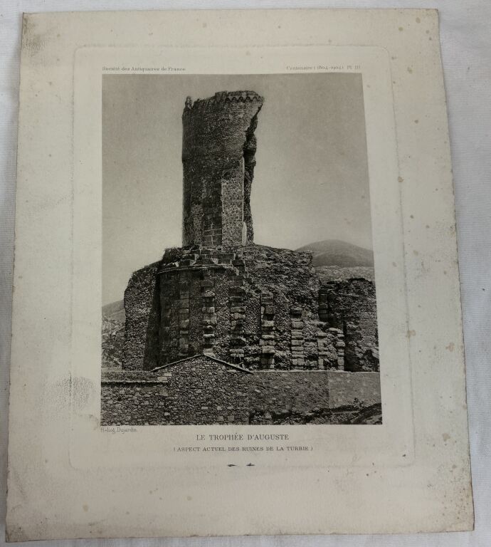 l' aspect actuel des ruines de la Turbie ". - Héliogravure Dujardin sur vélin 27 x 23 cm - illustration 18,5 x 14 cm au centre d'une cuvette.