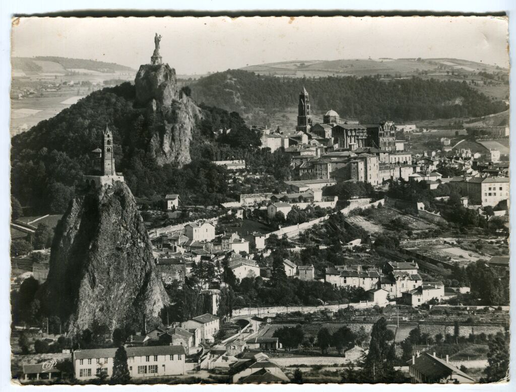 LE PUY en VELAY (43) - VUE GENERALE PANORAMIQUE, à vol d'oiseau - Belle carte postale géante, bromure photo 148 x 198 mm - CAP 116, circa 1950.