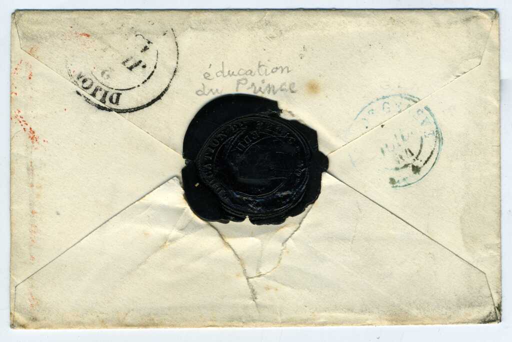 AU VERSO arrivée Dijon 2 juillet + cachet de fermeture cire noire EDUCATION du PRINCE. (catalogue Jean Sénéchal n° 4523 + 4520b).