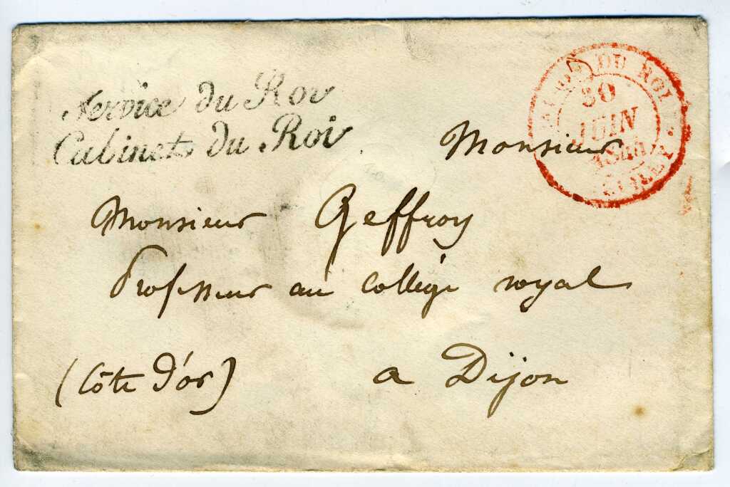 RARE lettre en Franchise du "CHÂTEAU de SAINT CLOUD" adressée à Monsieur Geoffroy, professeur au COLLEGE ROYAL A DIJON.