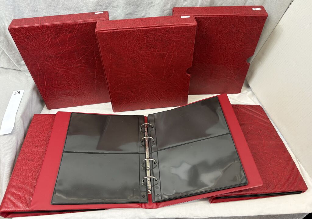 MATERIEL - ALBUM LEUCHTTURM OPTIMA pour lettres, premiers jours, cartes postales ou tous documents jusqu'à 120 175 mm - Belles reliures avec boitier assorti, couverture plastique grené, reliure mobile 4 anneaux - Chaque reliure avec 20 feuilles plastique noir sans chlore pour protéger vos collections, pour 80 documents. Contenance reliure 60 feuilles suivant épaisseur du produit.