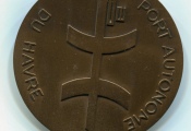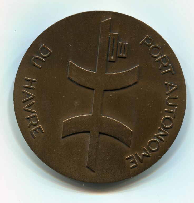Vue d'un pétrolier géant à quai - Revers : "port autonome du Havre " vue stylisée des digues circulaires de déchargement - Bronze 70 mm - 129 grammes - Frappe Arthus Bertrand.
