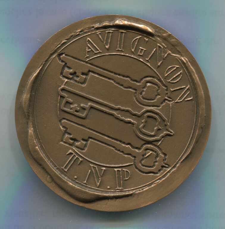 MEDAILLE de TABLE HOMMAGE à JEAN VILAR, au FESTIVAL D' AVIGNON et au T.N.P, " Théâtre National Populaire " ( * ) - rare médaille bronze 70 mm - 210 grammes.