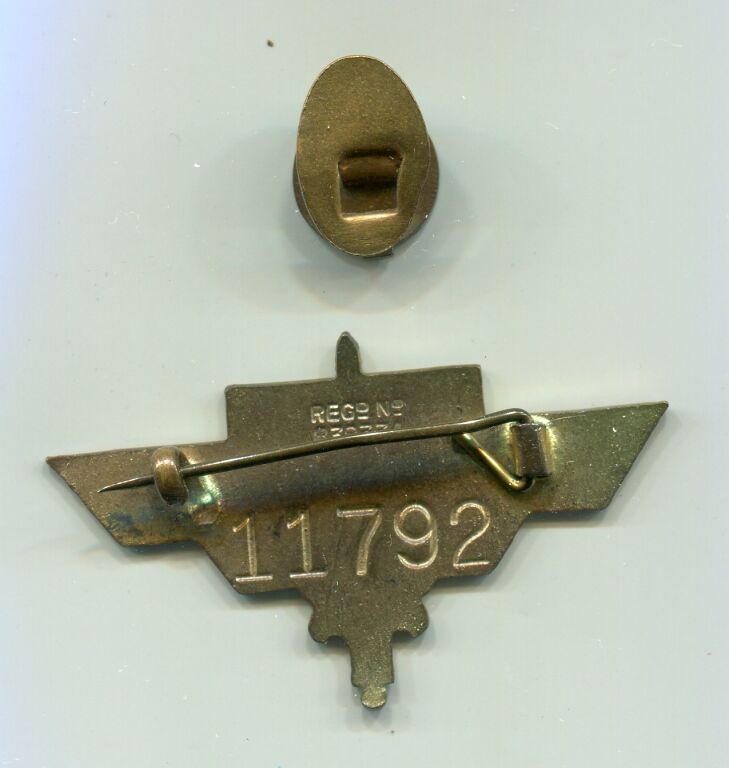 MILITARIA - INSIGNE REGIMENTAIRE - ARMEE de L' AIR - FORCES FRANCAISES LIBRES ( F.A.F.L. ) - 2 ailes en découpe émail grand feu bleu foncé avec glaive en rouge en centre mention FRANCE LIBRE - Fabrication en Grande Bretagne signée Rege 838334. RARE EXEMPLAIRE MATRICULE 11792. (léger manque en émail dans les ailes).