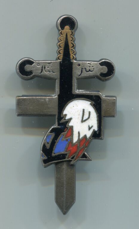 MILITARIA - INSIGNE REGIMENTAIRE - ECOLE de SAINT CYR, PROMOTION VEILLE au DRAPEAU 1943 - Glaive avec coiffure - Fabrication par estampage Arthus Bertrand.