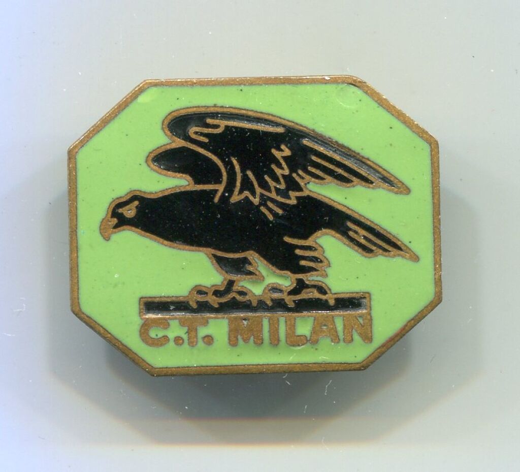 Rectangle pan coupé - émail grand feu, rapace en noir à gauche en centre, à l'exergue " C.T. MILAN " - Fabrication AUGIS LYON "made in France".