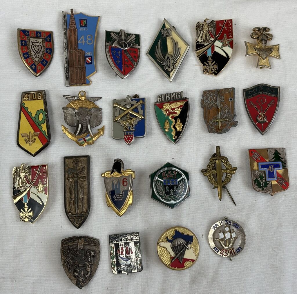 MILITARIA - INSIGNES REGIMENTAIRES - Collection de 22 (vingt deux) insignes, généralement anciens, originaux - Diverses unités, divers fabricants.