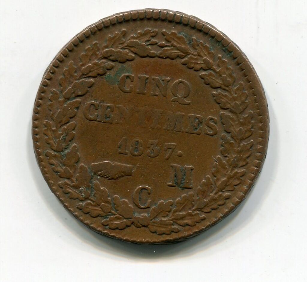 5 centimes 1837 MC - 9,39 grammes - TTB +