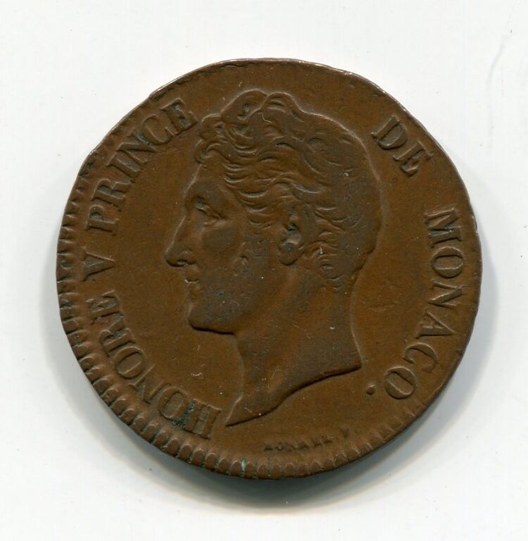 MONACO - PRINCE HONORE V (G MC 103), cuivre rouge, son buste à gauche.
