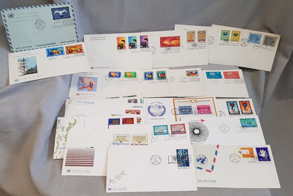 NATIONS UNIES NEW - YORK - collection de 50 enveloppes 1er jour illustrées officielles des années 60 - La plupart des enveloppes comportent toute la série émise, soit plusieurs timbres.