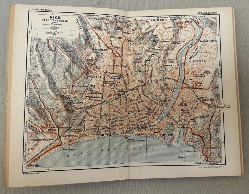 5 plans, 7 cartes, 16 gravures d'illustrations : renseignements historiques, renseignements pratiques. Le climat, marché, industries et commerces, visite de la ville, musées, port, Cimiez, excursions alentours, Vence, vallée de la Tinée, Levens, Perra Cava, de Nice à Monaco, Monte Carlo & Menton, Eze, Villefranche, Beaulieu sur mer, St Jean Cap Ferrat etc... - Hachette éditions.