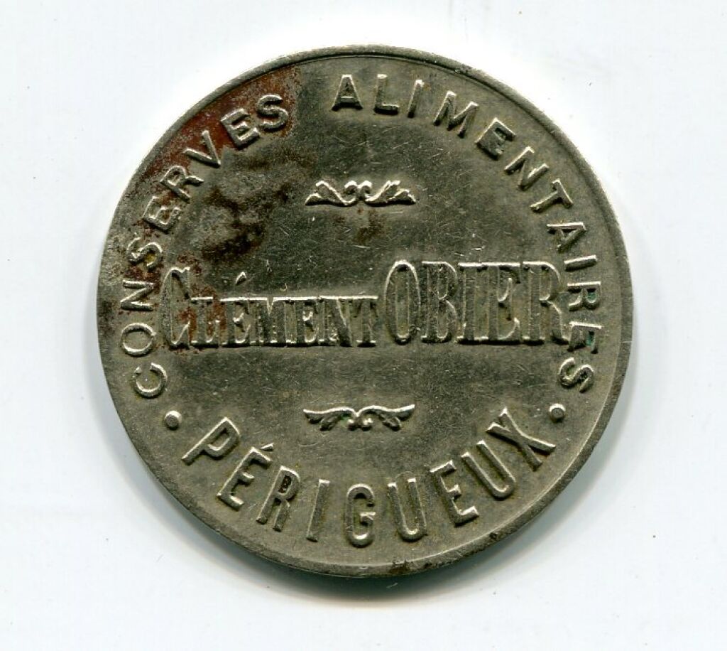 PERIGUEUX (24) - MONNAIE de NECESSITE 1916/20 laiton, 15 c de Clément OBIER, fabricant de conserves alimentaires - rond 23,5 mm - Elie 30.2 - TTB