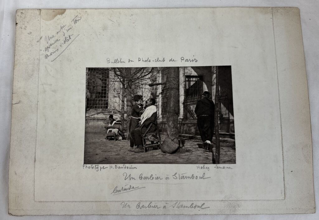 Émission pour le bulletin du Photo - Club de Paris du 1er avril 1891 - sur vélin 22 x 31, 5 cm - Impression 10,5 x 16 cm au centre d'une cuvette - Épreuve d'état de l' Héliogravure Lemercier suivant phototype H. Baudoin - Inscription au crayon, petite pliure).