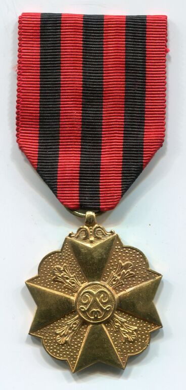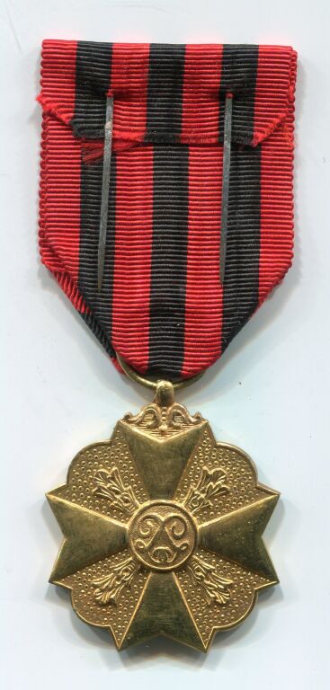 PHALERISTIQUE BELGIQUE - MEDAILLE CIVIQUE de 1ère classe, instituée pour récompenser les services rendus au pays dans les fonctions provinciales. Croix de Malte, Monogramme lettres L en centre avec mouchetures entre chaque branche - Ruban liserés rouge et noir.