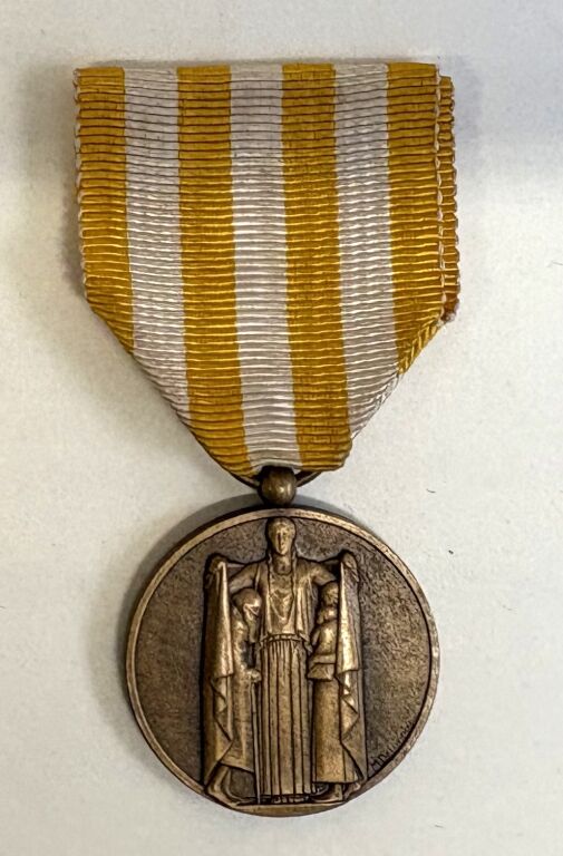 PHALERISTIQUE - DECORATION + SON CERTIFICAT " Ministère du Travail ", MEDAILLE D'HONNEUR de L' ASSISTANCE PUBLIQUE - Médaille de Bronze décernée à Hubert Schumacher 1933 - OEuvre du sculpteur Delannoy, la France avec un grand manteau abrite une femme et un vieillard. Au dos titulature et attribution par gravure.