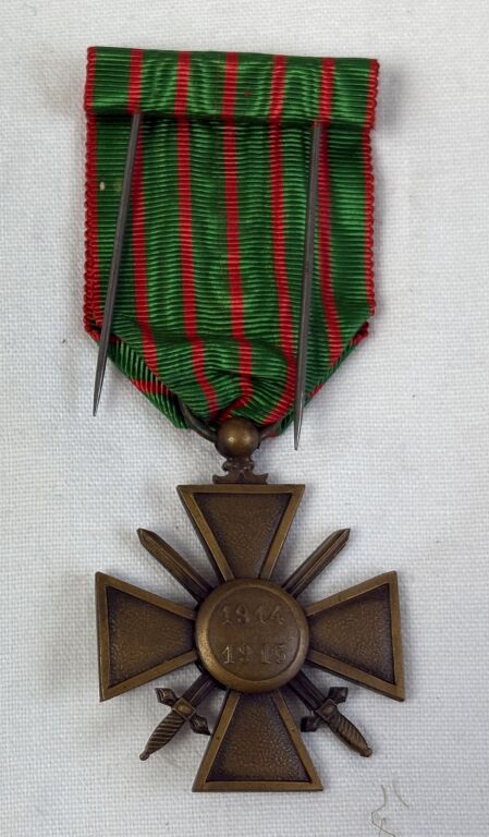 PHALERISTIQUE FRANCE - CROIX de GUERRE 1914-1915 avec palme (citation à l'ordre de l'Armée) - Ce modèle 14-15 fut le premier attribué ( projet Bartholomé) suivant le décret du 8 avril 1915. À partir des années suivantes les modèles seront modifiés pour s'adapter à la durée de la guerre (1914-15, 1914-16, 1914-17, 1914-18, 1914-19). -