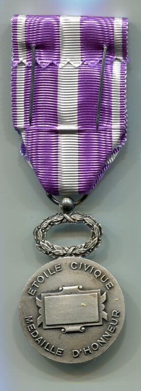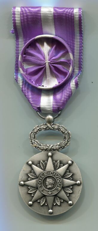PHALERISTIQUE FRANCE - ETOILE CIVIQUE, médaille d'honneur classe argent - Ruban mauve et blanc avec rosette. - Dans son écrin bois/velours de A. Bacqueville Palais Royal.