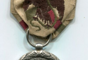 Le ruban, en soie brodée (ruban d'origine de la médaille de 1863) représente le vautour tenant un serment entre ses serres sur bâtons croisés vert & rouge.