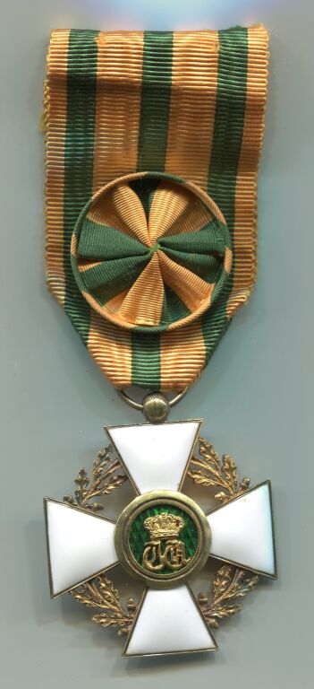 Croix d'officier en vermeil - ruban jaune / vert avec rosette.